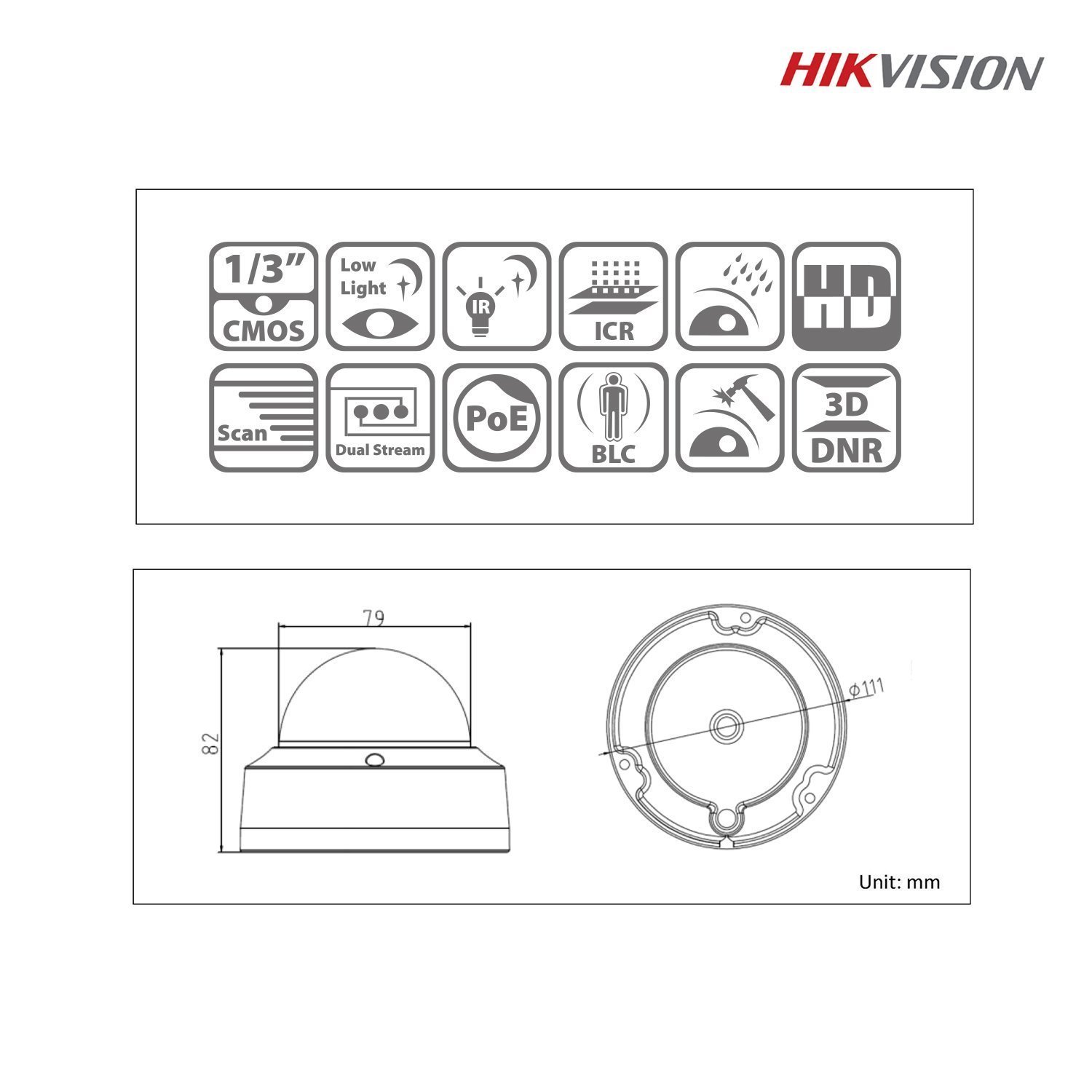 Hikvision 4CIP_DS-2CD2132FIS - Hikvision DS-2CD2132FIS Caméra Dôme Focale Fixe IR 3MP 4mm - Version Internationale