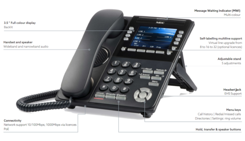 Nec ITK-8LCX - Téléphone de Bureau Monochrome, LCD 168x41 Version à 6 et 12 boutons (fixe) LCD rétro-éclairé MWI multicolore