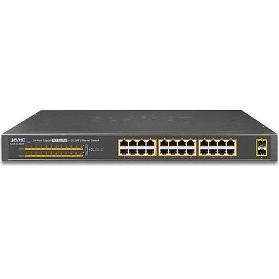 Planet GSW-2620HP - Commutateur 19" 24-Port 10/100/1000T POE + 2-Port 1000X SFP Gigabit Ethernet Switch (220W)