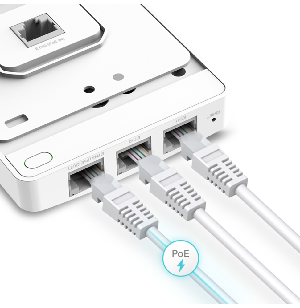 - 4 ports Gigabit : 4 ports Gigabit Ethernet (1 × liaison montante + 3 × liaison descendante), avec un port de liaison descendante prenant en charge le pass-through PoE pour alimenter l'appareil filaire. ‡