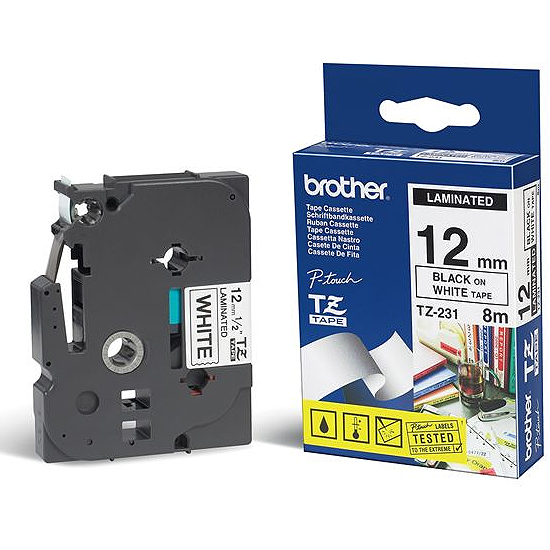 Brother TZ-231 - Ruban 12 mm noir/blanc - 8 m