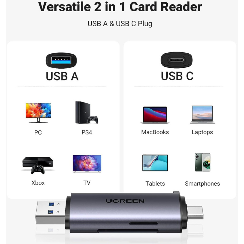 Ugreen Lecteur CM SD TF USB-C USB3.0 Lecteur de Carte SD Micro SD USB C USB 3.0 2 en 1 Adaptateur