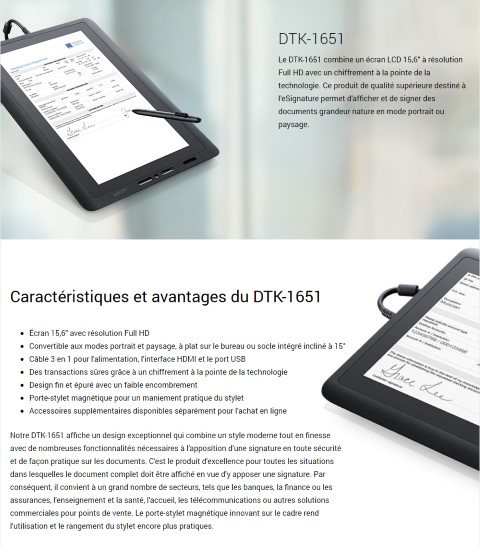 "DTK-1651 15.6"" Interactive pen Display Le DTK-1651 combine un écran LCD de