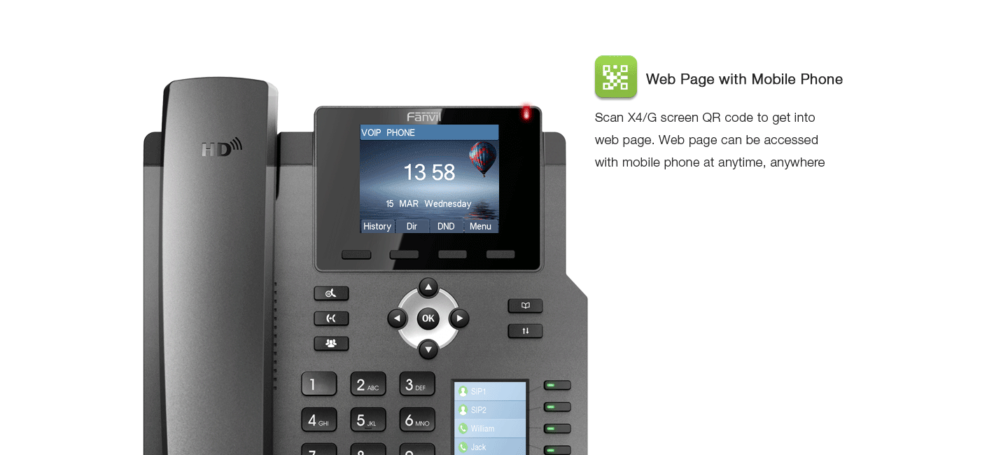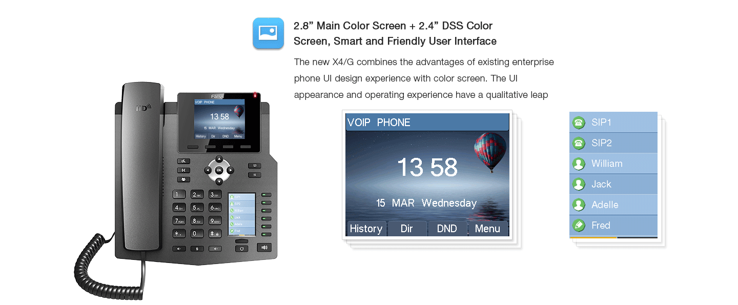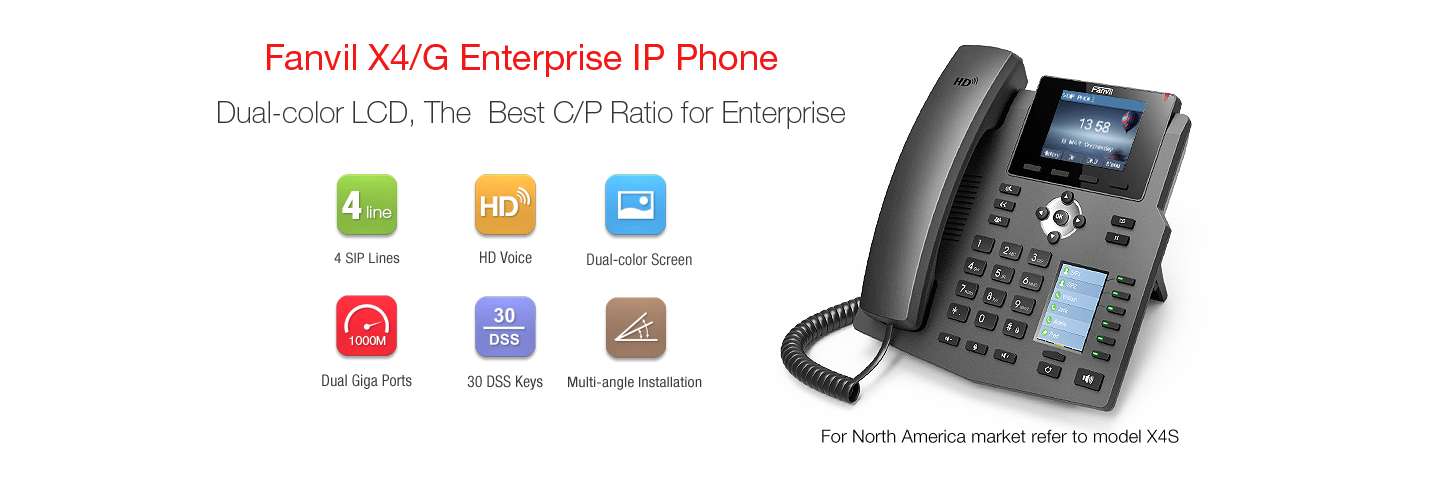 Fanvil X4 - Telephone a 4 comptes SIP avec Ecran 2.8" Couleur et 30 BLF sans alimentation X4SP