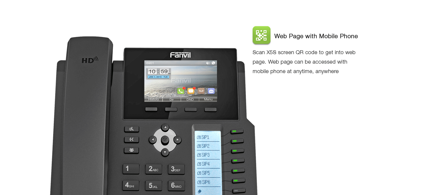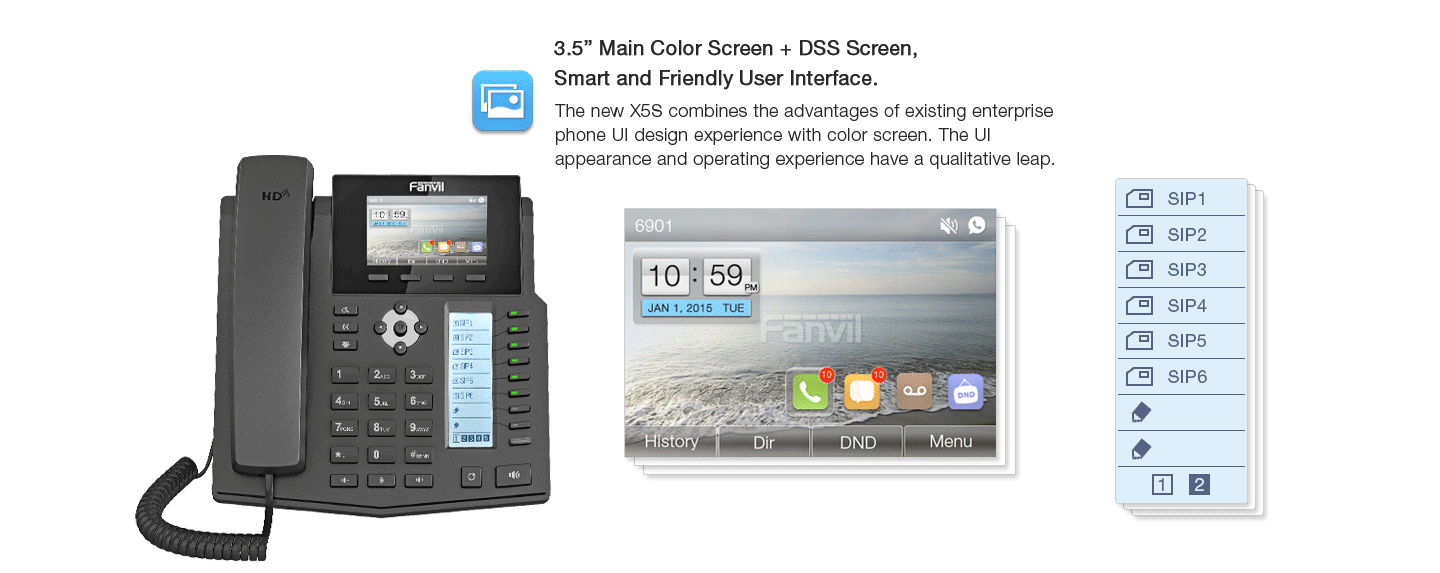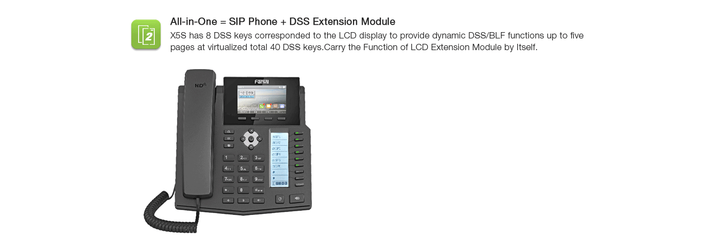 Fanvil X5SG - 16 comptes SIP écran LCD Couleur 3.5" intégré avec 12 bouttons DSS pour BLF 40