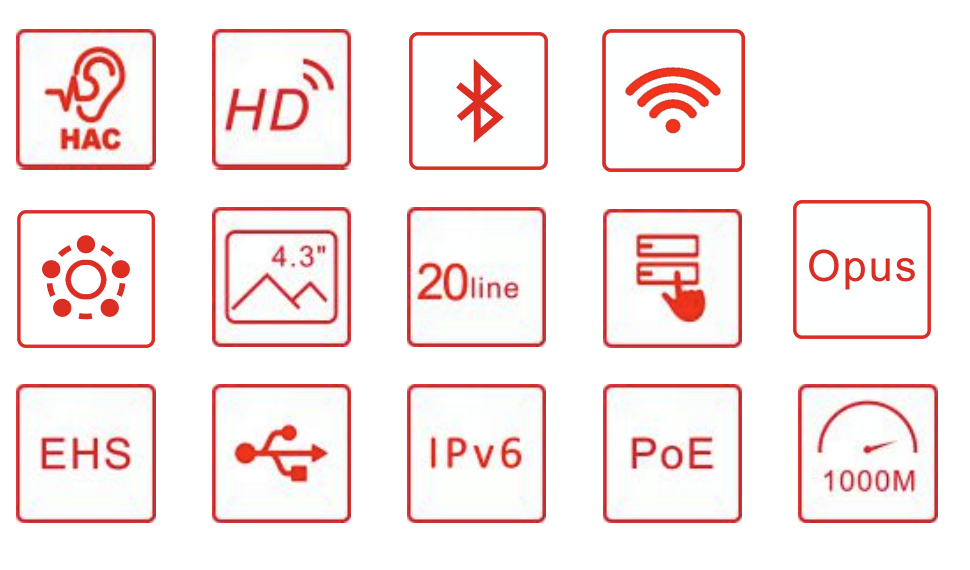 • Prise en charge des écouteurs sans fil Jabra (via le câble Fanvil EHS20 EHS)
