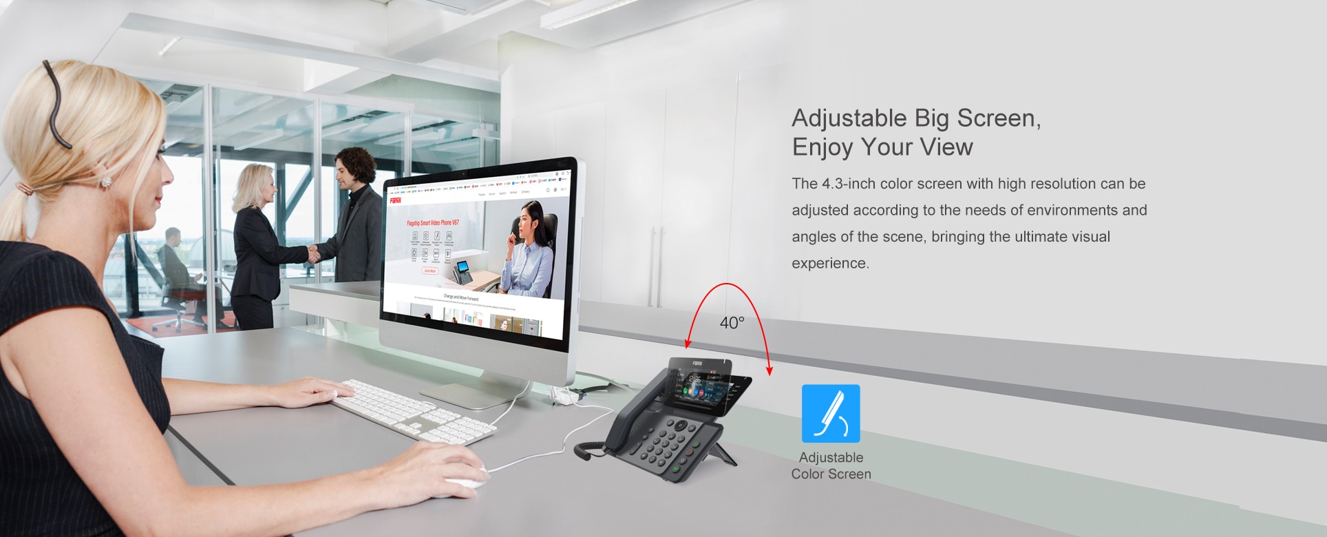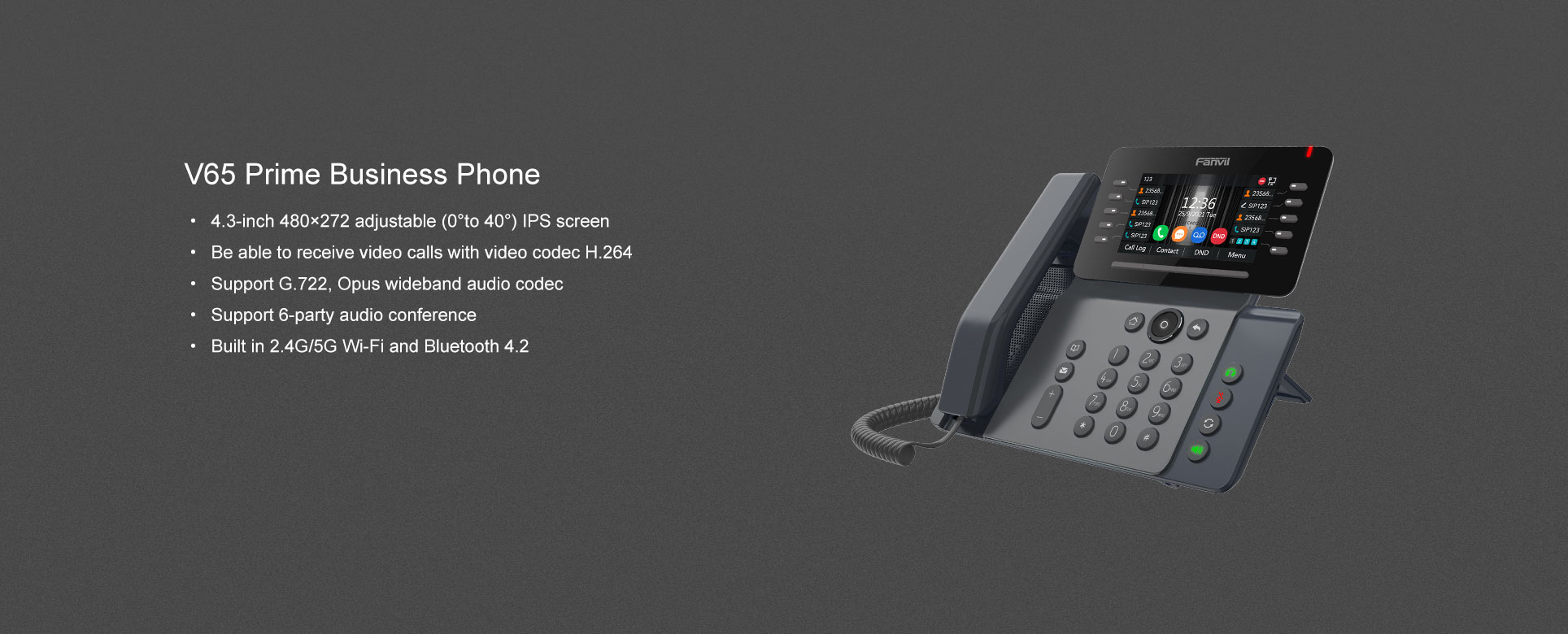 Fanvil V65 - Téléphone IP Haut d'entreprise écran Couleur de 4,3 pouces, 20 Lignes SIP, Bluetooth et WiFi Intégré 10 touches DSS programmables
