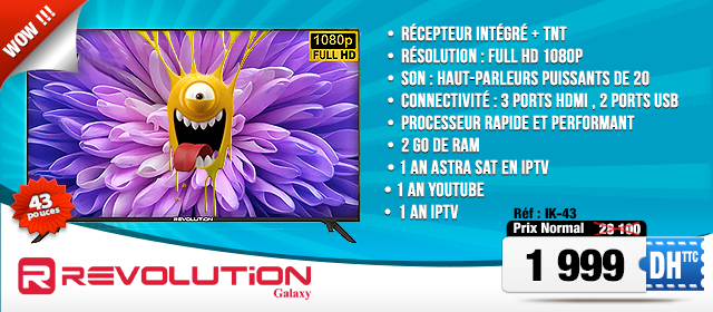 Revolution TV LED 43 pouce 1999 dh/ttc