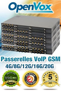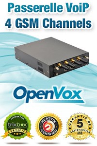Passerelle sans Fil avec 4 Canaux GSM OpenVox SWG-M204 Solution voip basée sur Asterisk pour les appels fixe et mobile via GSM Interface utilisateur conviviale et configuration facile Prise en charge du protocole SIP/IAX2. Compatible avec Asterisk, Elastix, 3CX, FreeSWITCH (SWG-M204 )