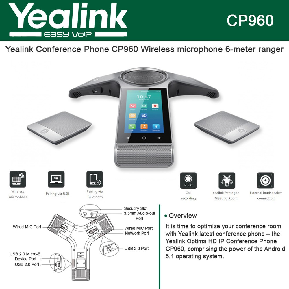 Yealink CP960-WirelessMic - Conférencier IP 3 micros intégrés Wi-Fi et Bluetooth Android